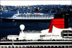 Thousands of people gathered at Sydney Harbour to see two enormous cruise liners - Queen Elizabeth 2 and Queen Victoria - cross paths in what was billed as an "historic royal rendezvous".Queen Elizabeth 2 was on her final voyage 30 years to the day it first docked at Sydney. For Queen Victoria, this was her maiden visit to Sydney.The QE2 is being decommissioned in November. It will visit Melbourne and Perth before becoming a floating hotel in Dubai.