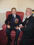 Since 1985 the Russian Government has awarded three Commemorative Medals to the Arctic veterans, for which I helped John receive his from the Russian Embassy. The Russians are also in the process of awarding the Medal of Ushakov, a bravery medal to these veterans, which was initially blocked by the British Government. I have recently been able to make a successful application on behalf of John for his Arctic Star Medal and had the honour to present his medal to him at the care home he now lives at on Armed Forces Day on the 28th June 2014.